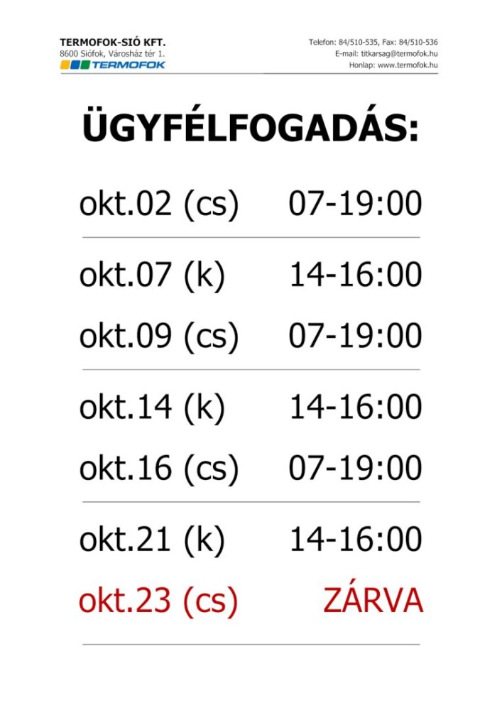 kedd: 14:00 - 16:00; csüt.: 7:00 - 19:00